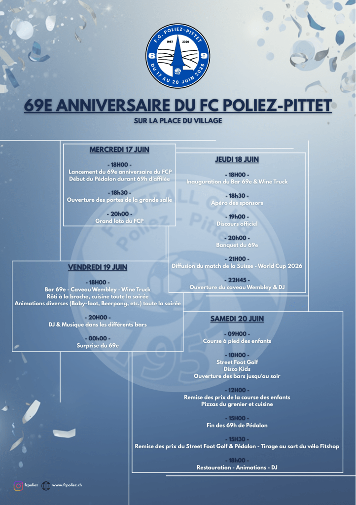 Afin que le 69ème anniversaire du FC Poliez-Pittet se déroule de la plus belle des manières et que cette fête reste gravée dans nos coeurs, nous avons besoin de votre aide durant la manifestation pour bénévoler.